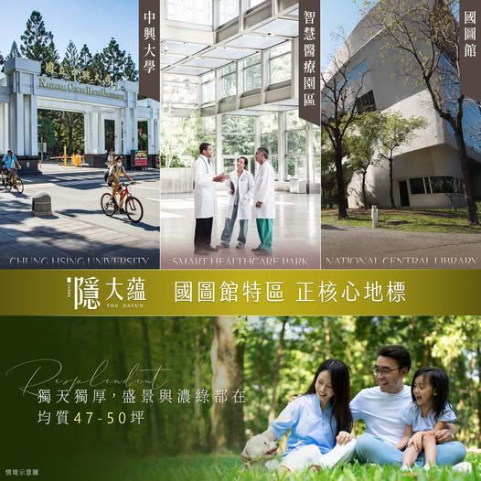 - 國圖館特區正核心,文教、政法、醫療,三角鑽石地帶。