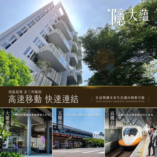 - 600公尺五權車站,城市脈動快意掌握, 一站台中 三站高鐵, 一站抵達台中火車站, 三站抵達高鐵車站,輕鬆達北高。